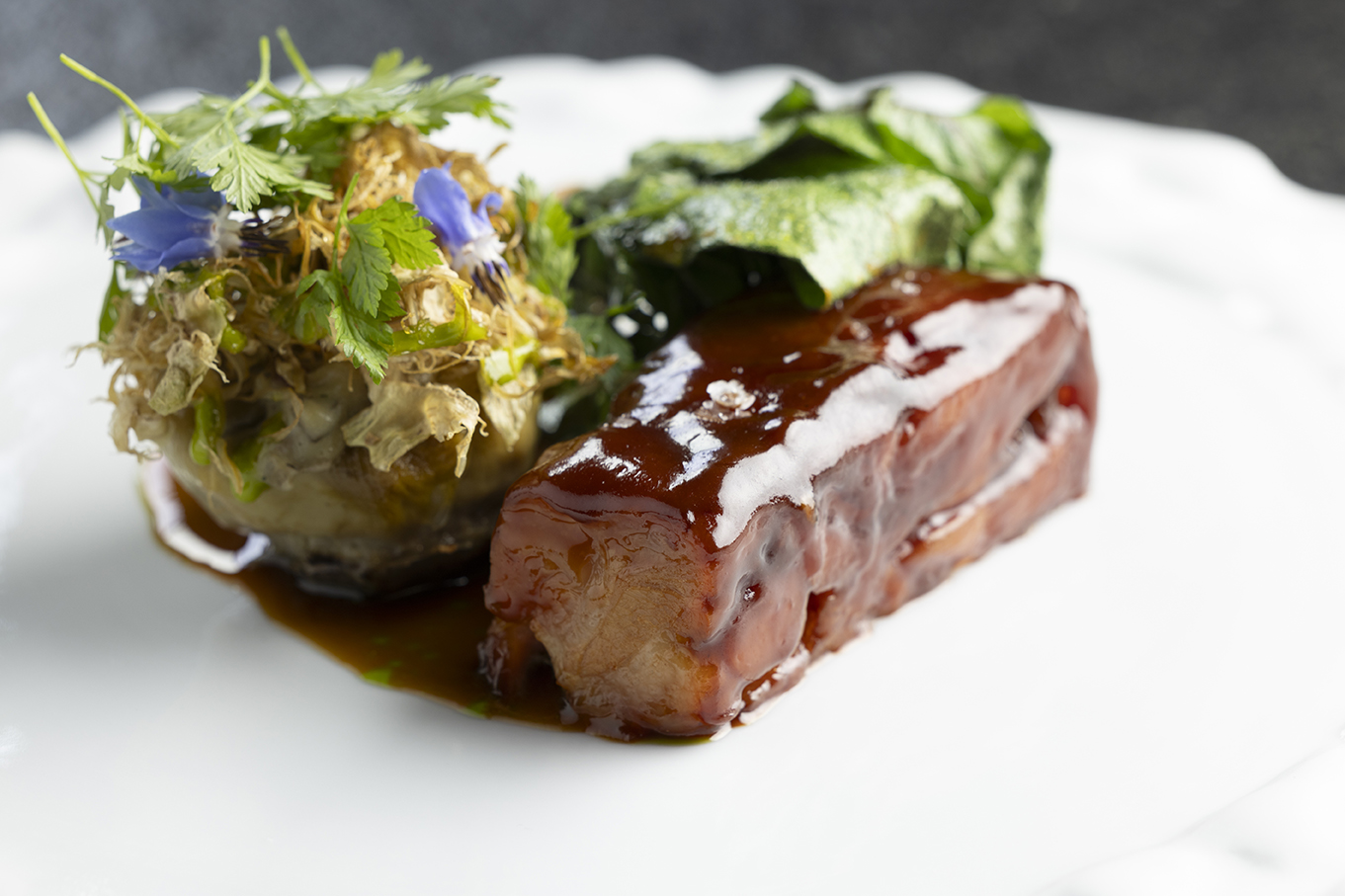 Lombata di manzo, sedano rapa sfogliato, scalogni fondenti e senape